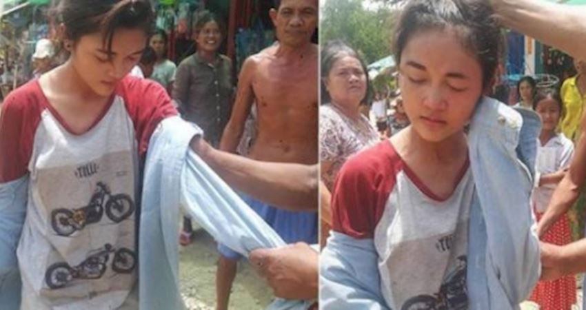 泰國當地的居民抓住她之後揪著她的頭髮把她帶到了路中央,附近的居民聽說抓了小偷都紛紛的跑過來看,