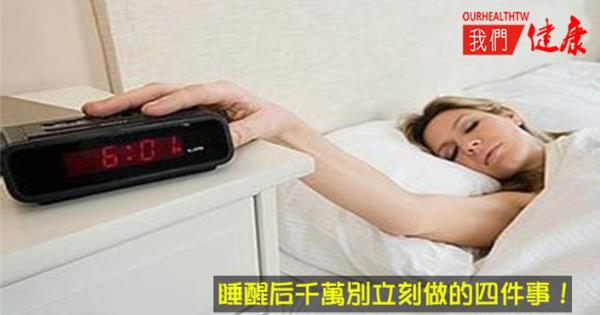 每天睡醒後你會做什麼事呢?其實做什麼事都可以,但是下面四件事千萬別立刻做。 1、一忌戀床 現在醒後戀床不起的人越來越多了,尤其是節假日。凡有過戀床不起的(不管年輕的,年老的)人都會有這樣的感受:睡眠和戀床的時間多了,反而覺得四腳發沉、精神萎靡、有越睡越累、越睡越不舒服的感覺,結果,還不如每天忙於工作或學習時那樣精力充沛。戀床打亂了平日正常的生活規律,使體內許多生物鐘錯點。 2、二忌醒後起身小便 早晨一覺醒來後,可能膀胱內已充滿了尿液,有急不可待地排尿感,尿意越是緊迫,越要沉得住氣,不可立即起身小便,尤其是老年人,直立位小便要避免。因為,膀胱排空容易引起頭暈,甚至出現排尿性暈厥。 3、三忌醒後立即劇烈運動 許多人,晨起後習慣進行適當的體育鍛煉,只要注意,對健康的確有益處。但是,運動必須在晨起後稍作休息一下,待氣血陰陽運行平衡後才可進行。