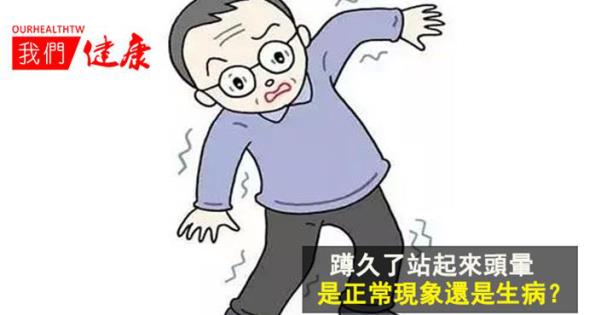 所有這些,都使得頭部的血液相對地減少了。人的腦子是最需要血液供氧的,短暫的減少供血可使人因一時性腦貧血而感到頭暈。此外,由於頭部血液減少,眼球內的供血自然也少一些,這樣,就會發生眼花繚亂、金星亂冒的現象。 同時,貧血、低血糖會加重此現象。 遇到這種情況,不必過分驚慌,只要稍作休息,活動活動下筋骨,心臟供血就能恢復正常,頭暈眼黑的症狀就會消失。 2.一些病患導致的蹲坐久站立頭暈