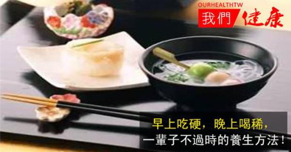 晚飯後,人的活動量會減少,為了避免食物堆積,應少吃點,並選擇好消化的食物,以稀粥為好,肉類、辛辣食物等最好避免。晚餐喝粥還有養胃、安神的作用,推薦老人可以吃些山藥粥、蓮子粥、紅棗粥等。 早上喝水,晚上喝蜜 中醫有句話叫:“早喝鹽水晚喝蜜”。鹽有清熱、涼血、解毒、養腎的作用。晨起後空腹喝一杯淡鹽水,有助於降火益腎,緩解便秘、改善腸胃的消化功能,且對上火、咽喉腫痛者也有好處。但患有高血壓等心腦血管疾病的病人,以及腎臟功能不好的人應慎喝;一般100毫升水中食鹽不要超過0.9克,以免加重腎臟和心臟負擔。  晚上喝蜂蜜水,既可以幫助消化,又有助睡眠。每天睡覺之前可以舀一勺蜂蜜,用溫開水調服。但有起夜習慣的人晚上最好不要喝蜂蜜,因為其含糖量較高,容易引起多尿;糖尿病患者也應慎喝。 晨練晚一點,晚練早一點 不論是早起鍛煉,還是傍晚鍛煉,也都需要適應冬天的時令特點。
