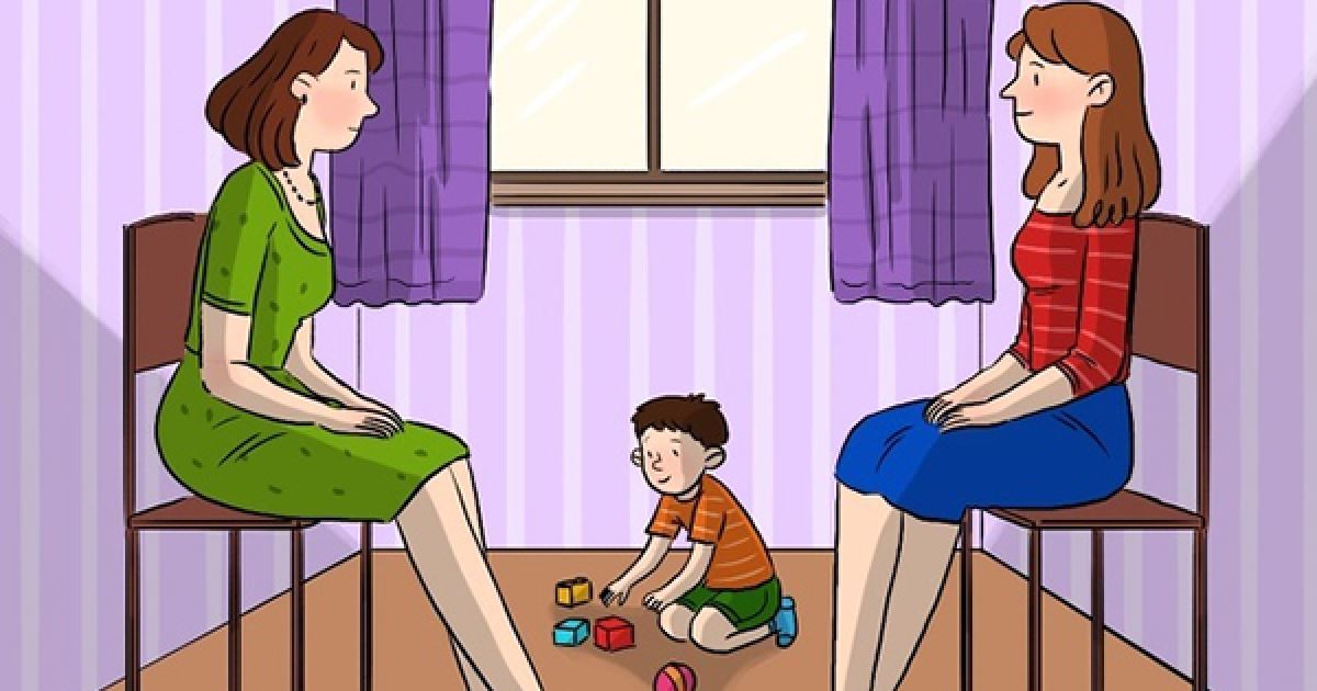 ▼問題1:房間內有兩個女子,還有一個小孩在地上玩著玩具,到底哪一個才是小孩的母親?