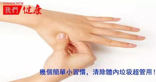 1撚壓“虎口”排便順暢  “虎口”,指手背大拇指和食指之間的部位,其正中間有合穀穴。如廁時,可以將兩側“虎口”交叉,用大拇指在上面的手稍用力從手腕部向“虎口”沿食指邊緣撚壓,每側30次並左右反復交替,因為撚壓的是手陽明大腸經的路線,因此堅持這個習慣,有助於排便通暢。 2常喝溫檸檬水  每天早上起床後喝一大杯溫檸檬水。除了補充水分,檸檬水能啟動身體的淨化過程,溶解多餘的脂肪,清除體內各種器官的廢物和毒素,淨化血液,改善血質,促進新陳代謝,清潔並修復整個消化吸收係統,增強消化能力,調整吸收平衡。 3按摩淋巴