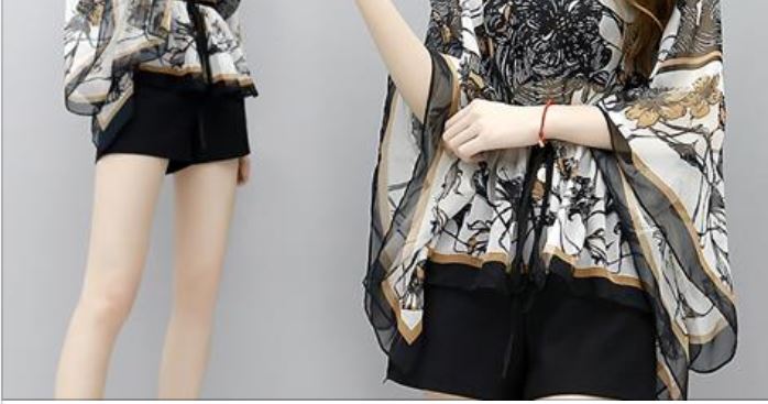 新款寬鬆兩件套褲雪紡上衣短褲休閒時尚套裝
