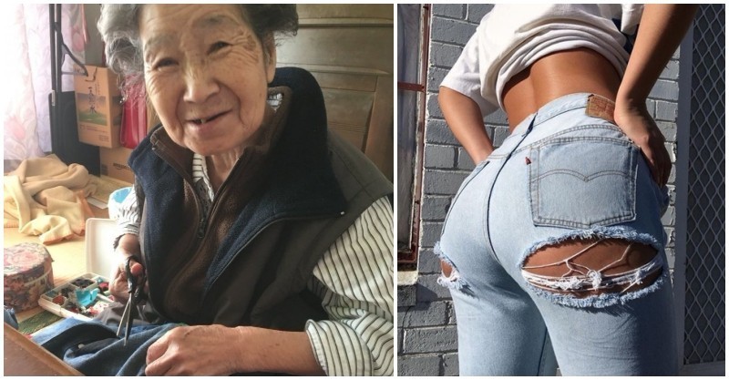 這時候網友頓時覺得大事不妙,因為破褲的特色就是看起來破破的,阿嬤一定是因為怕她冷就把每個洞都縫起來了...