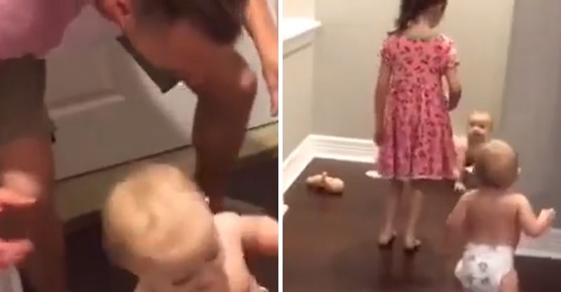 跟爸爸玩捉迷藏,結果一直偷偷回頭看,完全被融化了~