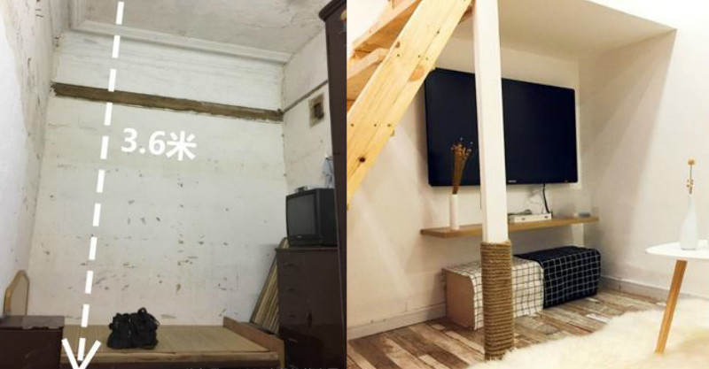 13平米怎麼改啊?既然麵積沒法改變,不是3.6米高嗎?那就從空間上搞事情。