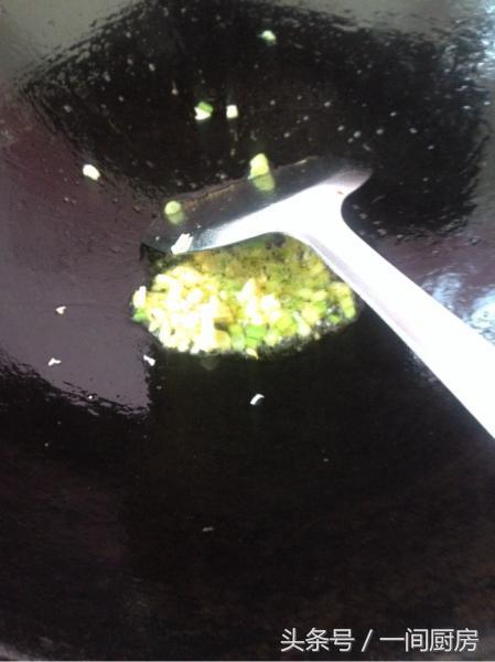 鍋裡倒適量油,家裡沒薑了,就用蔥花和蒜炒出香味,有薑就放些薑絲