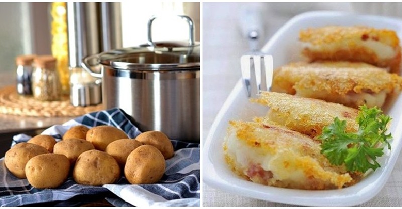 馬鈴薯帶皮蒸熟,剝去皮搗成馬鈴薯泥,加入牛奶、黑胡椒粉、鹽拌勻;