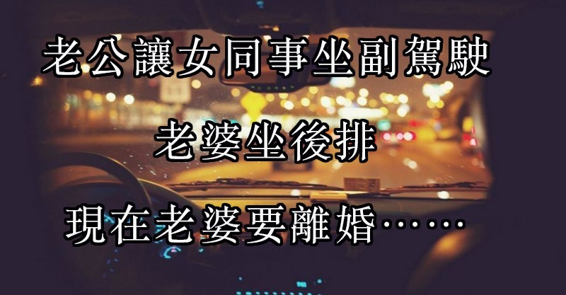 「你讓老婆坐後排,讓別的女人坐在離你最近的地方?」