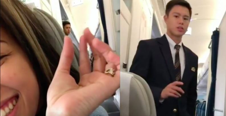 他甚至拍下這段影片,影片中和空姐偷偷互動,並且大讚「她好可愛」。
