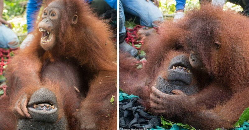 國際動物救援組織(International Animal Rescue,IAR)日前接獲通報,進入農場拯救被活捉的紅毛猩猩母子,