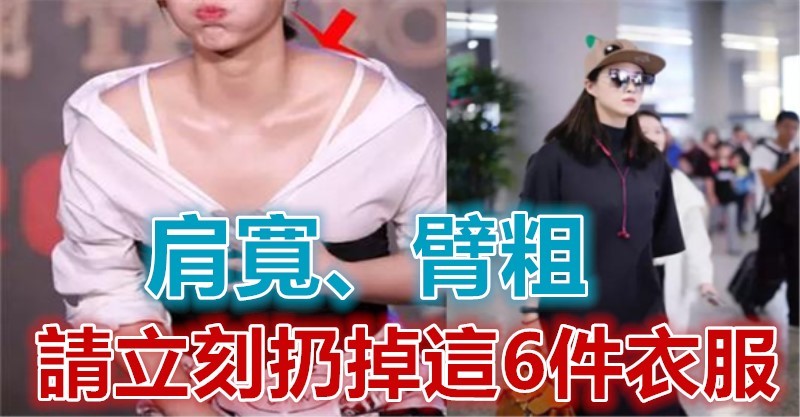 避免✖ 減肥還沒成功之前的馬思純,背部很厚實。一字領造型的襯衫,毫無保留的將缺陷展現出來。