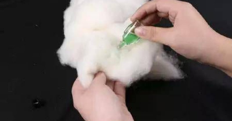 5、在棉花上滴幾滴風油精,放進布袋裡,在用針縫合。