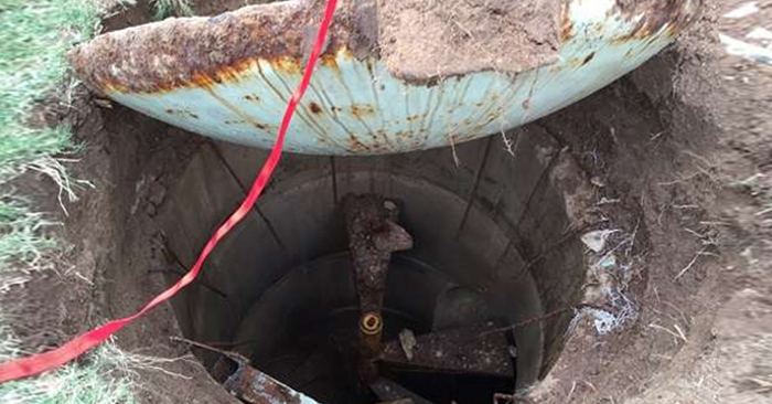 ▼在奮力挖掘了1小時,差不多挖到60公分的深度時,他看到了一個硬硬的金屬圈…應該就是這裡了。