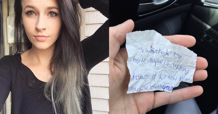 “我今天本來想自殺,但是因為妳,我沒有這麼做。謝謝妳,善良美麗的女孩。”