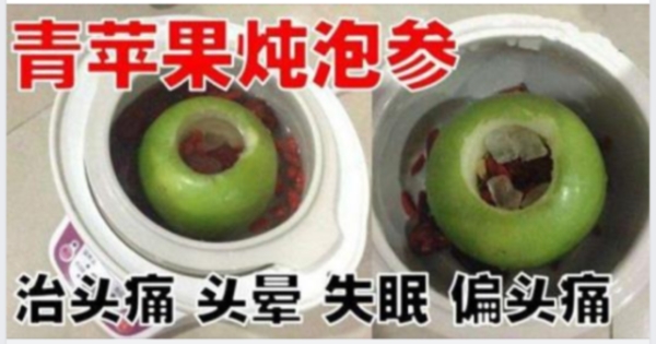 3.將泡參放入蘋果中心,加入水其它材料也一起加入。