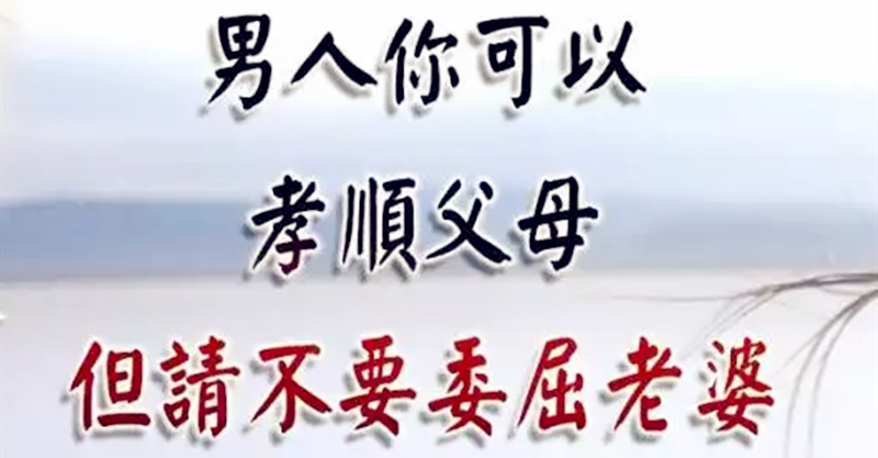 所以,你可以孝順父母,但請不要委屈你的老婆。