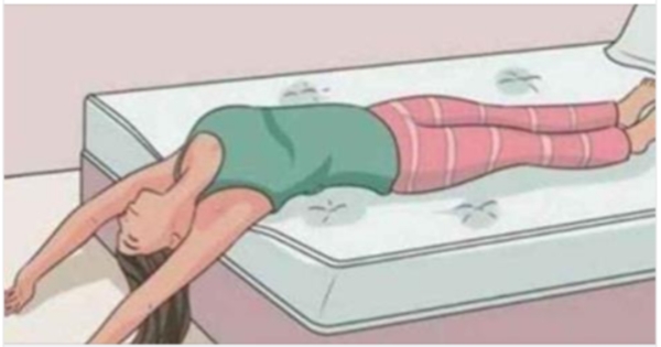 盡量使兩膝靠近床麵,結束動作後,伸直兩腿,抖動放鬆。