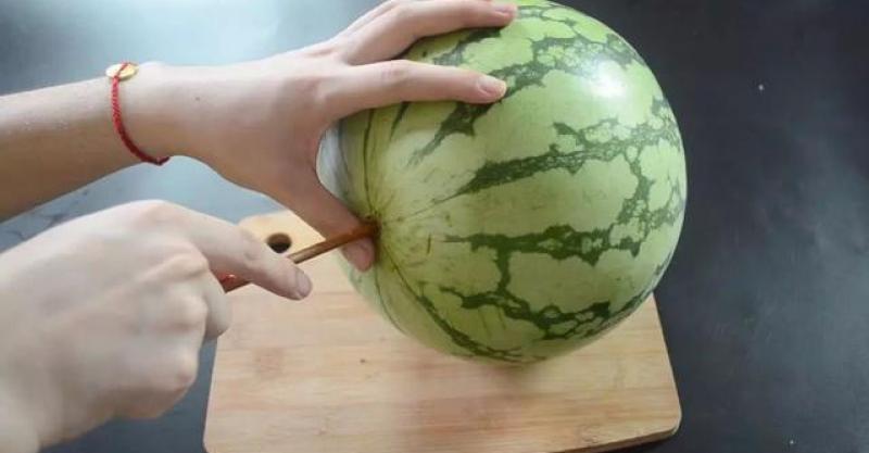 插進筷子的原理很簡單,可以讓西瓜裡麵的壓力和表麵的張力,提前釋放出來,所以切西瓜的時候就不會爆裂啦!