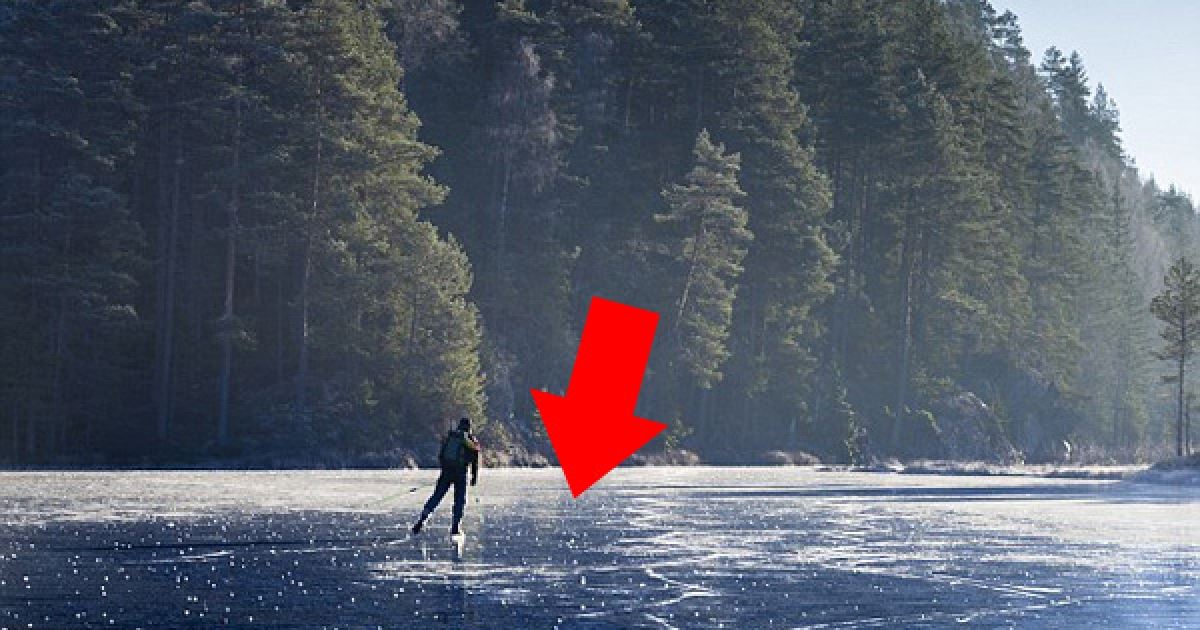 有人在冰凍的湖上溜冰時,低頭一看居然發現一隻狐狸,