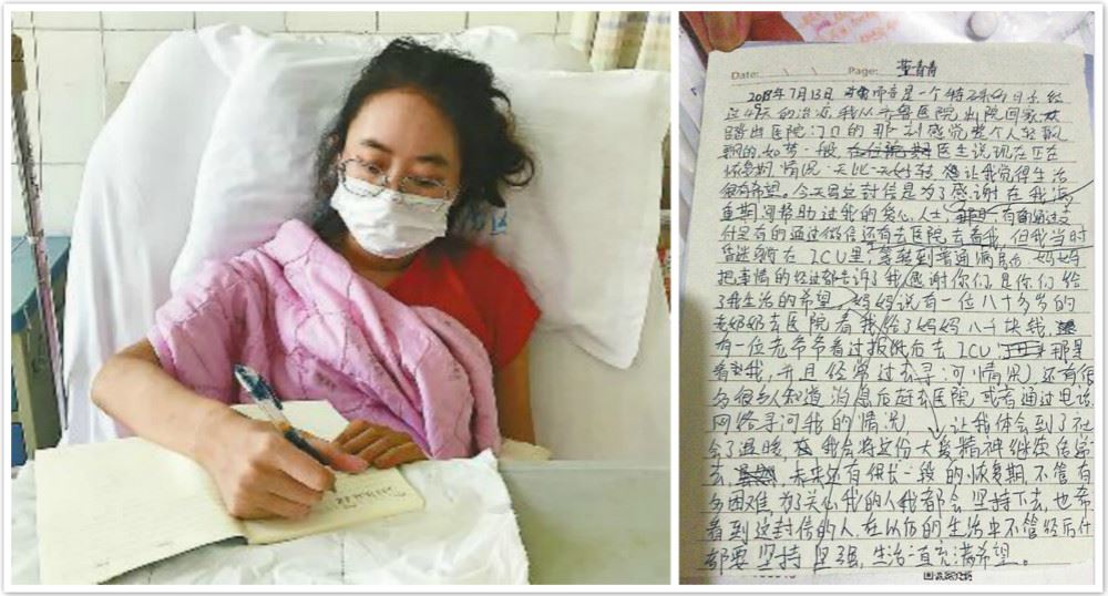 24歲重症“字條女孩”出院回鄒城老家 病床上寫感謝信