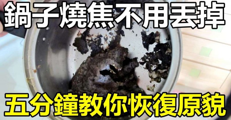 靜置五分鐘,神奇的事情發生了,焦掉的部分一整片從鍋子上輕鬆脫落。