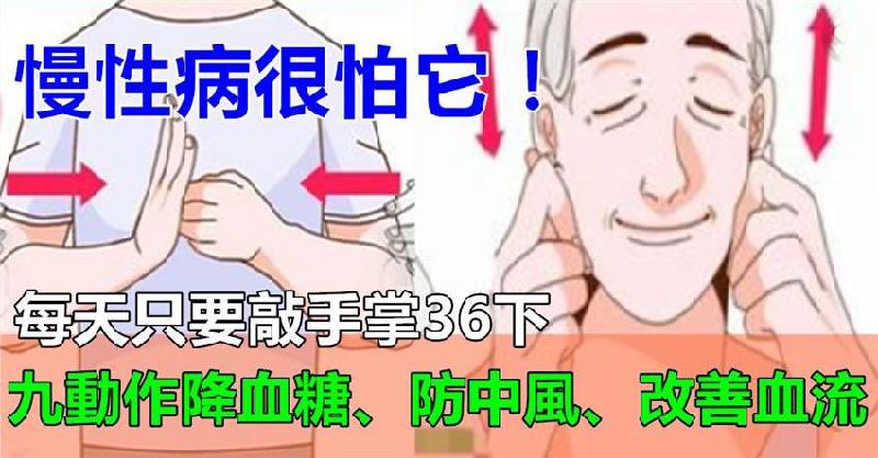 動作:雙手掌心朝上,小指互相敲擊36下。