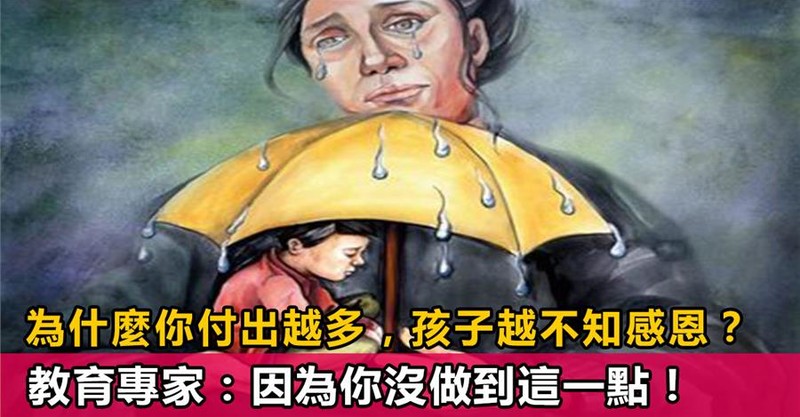 否則只會演變成:心甘情願付出一切的父母,最終換來了一個一味索求的孩子,不懂感恩,不知進取,過著失敗的人生。