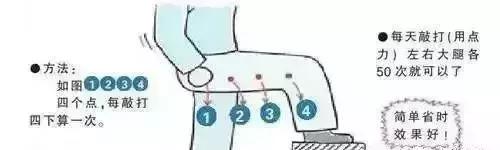 由於大腿肌肉和脂肪都很厚,因此必需用力,而且以每秒大約兩下的節奏敲,才能有效刺激穴位。