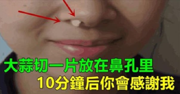我們把它剪成與自己鼻孔大小的蒜塊,把它塞進鼻孔裡,每天堅持10分鐘,這樣鼻炎的情況就會有所緩解哦
