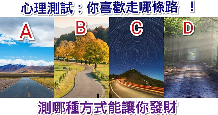 金錢在我們的日常生活中佔據著比較重要的地位,而每個人的財運也是略有不同的,所以要據此來選擇適合自己的賺錢方案。一起來做下麵這個小測試,你喜歡走哪條路,憑藉你的第一直覺做出一個選擇,測試一下哪種方式能讓你發財吧!A、走這條路