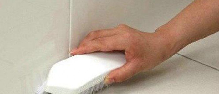 把清潔劑塗灑在瓷磚上,過一段時間,輕輕一擦就可以了。