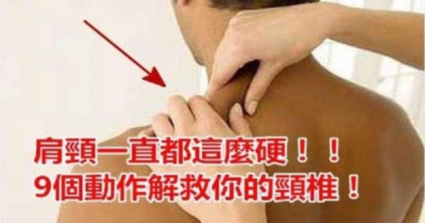 用左手掌來回摩擦頸部,口中默念8下後,開始捏後頸,然後換右手,有助於頸部放鬆。