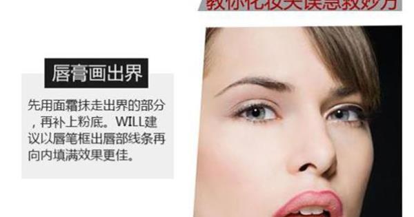 化妝師建議使用熱發電睫毛棒,由睫毛根部向上掃,其熱力可以溶解睫毛上結塊的部分,然後再用眉刷將睫毛梳理得根根分明即可。沒有電睫毛棒則可以用眉刷代替。  嘴唇太幹,唇膏不均勻 有的女生會有「dry 爆唇」,每次塗唇膏都總是會因為唇上的死皮和唇紋導致唇妝很醜,而且唇膏還總是卡在唇紋中間,實在是慘不忍睹……解救的辦法就是定時用熱毛巾濕敷後去除唇部的死皮,並且每晚睡前多敷唇膜,白天則是塗上成分比較天然的潤唇膏打底。Hana 建議如果同屬幹唇的話應避免使用啞光的唇膏,可以選擇既滋潤又飽和的唇彩代替。  唇膏畫出界 和「畫錯眼線」的做法一樣。但由於唇膏顏色比較深,可以先用面霜抹走出界的部分,再補上粉底。Will建議以唇筆框出唇部線條再向內填滿效果更佳。
