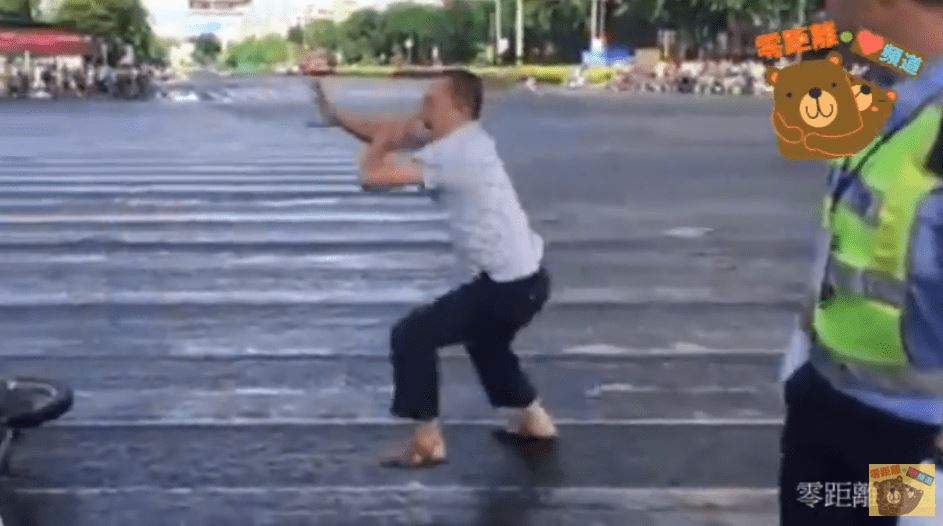 就在不久後,這名男子突如其來地,直接在自己的機車上「起乩」熱舞,就連車子倒了也完全不在意,讓大家都超傻眼,甚至在原地跳不過癮,還跑去馬路中間,整條馬路都是他的舞池,讓一旁的駕駛也驚呆,不過令警察意外的是,他跳到一半,突然衝過來踢了其中一名警察,讓其它員警看了愣住,接著就衝上前把他抓住!