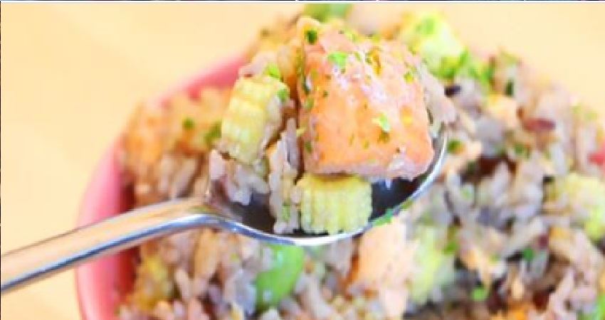 這道日式風味的鮭魚炊飯做法簡單,而且健康又好吃。