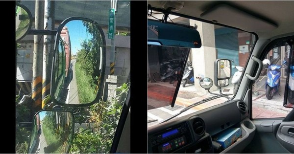 「3.5貨車視野:左邊2後視鏡,右邊2後視鏡,外加右邊正前下方後視鏡及車窗。