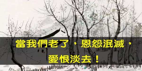 當你老了,一山晴日,一峰煙嵐,靜靜坐在水濱,看千帆過盡,半江瑟瑟半江紅,恩怨泯滅,愛恨淡去,原來江湖兩相忘也是那麼快意。