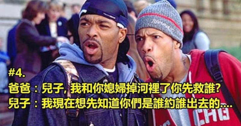 4.爸爸:兒子,我和你媳婦掉河裡了你先救誰?兒子:我現在想先知道你們是誰約誰出去的。。。。。