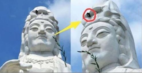 我想沒幾個人是不知道大慈大悲觀音菩薩的吧?她的法場在中華大地遍地都是,近日就有一處景區的觀音雕像,頭上出現了一個黑色的不明物體。