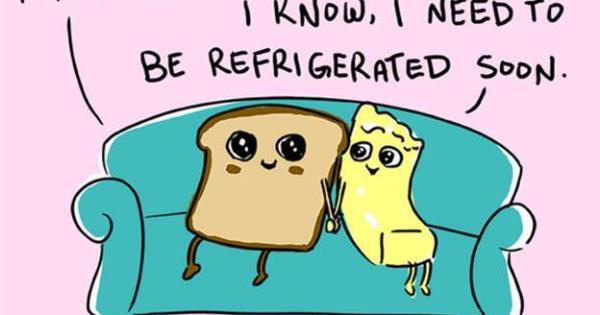 4.「吐司絕對就是那個真命天子啦!」  跟其他的奶油朋友們見面時,也要強調他絕對就是那唯一的一個! 5.奶油:「我在你手臂裡融化了」  只要與對方在一起時,就會產生美好的化學作用,即使對方有什麼問題,愛與包容大過一切缺點! 6.吐司:「妳聞起來好奶油喔!」  無法不沉浸在女生迷人的氣味當中~ 徹底被香味控製的吐司男孩... 7.BFF - Best Friend Forever 永遠最好的朋友  除了是一對戀人,也絕對是最好的朋友,無話不談的心靈伴侶最甜蜜了! 8.「想不到當油漆變乾後這麼刺激!!」  只要是能在一起,不管做什麼無聊事情都變得非常有趣!甚至只是一起看油漆變乾.... 9.「天啊!世界上沒有什麼比這更幸運了!」  誰能比我更幸運呢?只有熱戀中的甜蜜男女,才能懂得一句話!畢竟能找到「真愛」確實可是非同小可的一件大事呢~ 10.連放屁也可以安心  太棒了!可以在對方面前做自己,不完美的展現,不會得到嫌棄反而得到對方的包容,這感覺好幸福! 11.開始害怕死亡的到來,因為會離開對方  每每過個馬路,都需要牽扶相伴,永遠不讓對方陷於危險當中,實在無法接受對方有天將會死亡,因為實在是太愛太愛自己的另一半了! 12.真愛就像是奶油和土司般的完美組合  兩個完全不同的東西,加在一起卻是這麼剛剛好。 是不是很動人呢?這個世代的人越來越多速食愛情,卻沒辦法想像到那份熱戀中的甜美,即便是三年、五年都還是可以讓愛情很動人。也許我們都該反省,是不是越來越現實且越來越計較呢?愛情與婚姻是上帝給我們人類很棒的祝福,希望我們都能夠有著常相廝守、願意包容對方,愛上對方一切的交往心態,相信愛情就可以甜甜蜜蜜、長長久久了!