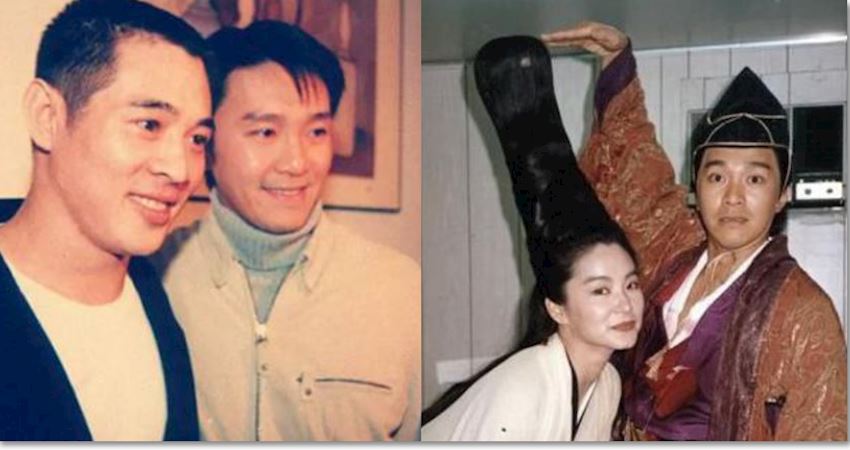 周星馳與林青霞的後台搞怪照片。