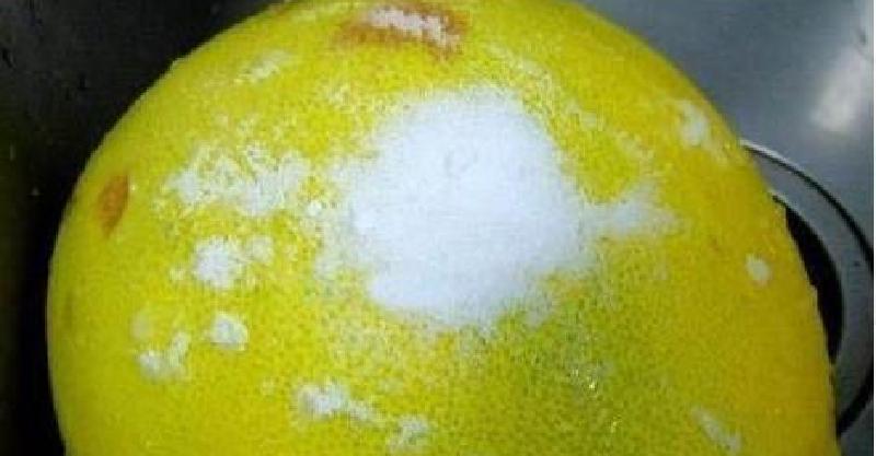 1,柚子熱水浸泡10分鐘,用鹽搓揉乾淨!