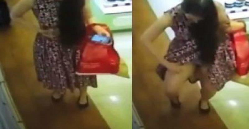 就在大家以為,長發女要將香水放回原處時,她迅速左右張望,趁沒人注意之際,撩起裙擺朝下麵狂噴,後來甚至越掀越上麵,而害羞部位也全都被錄下來啦!