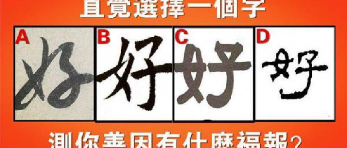 一個人心量越大,福報也越大,修善積福,利祿自然隨之而來,人,相互幫扶才溫暖,事,共同努力才簡單,持續做好事,做善事,累積善行,結善緣,積善行德功德無量!好人有好報,選一個字,測測你這輩子會有什麼福報?註:心理測試只是提供一定的參照,答案僅供參考,三分天註定,七分靠自己,祝大家開心幸福。