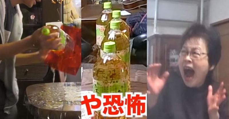 日本的知名youtuber壽司拉麵和可愛的爺爺奶奶住一起尤其是個性相當天然呆的奶奶更是常常被調皮的孫子整到半條命都沒有這次壽司拉麵又想到整人的新點子將一整罐全滿的綠茶倒過來將底部挖空後,用板子蓋住快速倒放在桌上之後再將板子抽開,一氣嗬成就完成了綠茶整人的前置作業啦~~