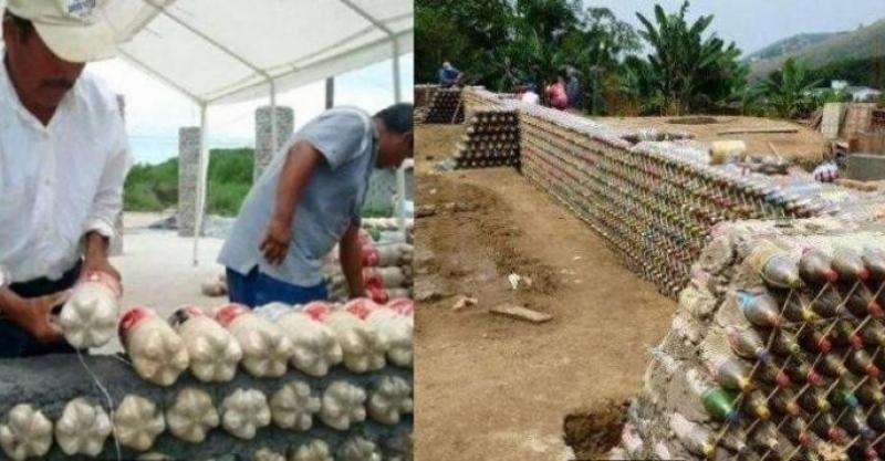 然而,下麵這位男子卻用塑膠瓶開始了一項特大工程!