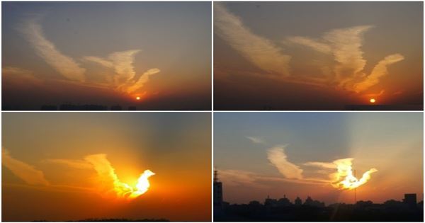 日落時分,北京天空出現了壯美的一幕:晚霞像極了一隻展翅翱翔的「火鳳凰」。眾多網友紛紛拿起相機、手機記錄下這一時刻。