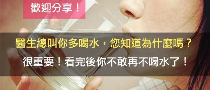 醫生總叫你多喝水,您知道為什麼嗎?很重要!看完後你不敢再不喝水了!(請用力分享轉載) ... 觀看人數:865