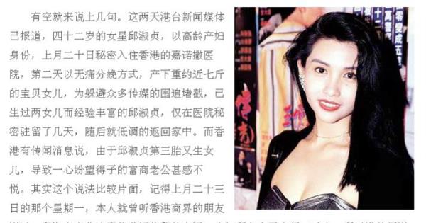想想挺不容易,邱淑貞自從九九年嫁給香港I.T時裝集團老闆沈嘉偉之後,基本上就已經全面淡出演藝界工作了,隨著婚後不斷的幸福生活消息,邱淑貞從零一年到零四年之間,經媒體報道先後生下兩位寶貝女兒沈月與沈日,再加上剛出世的小女兒沈星,堪稱家裡的太陽、月亮、星星三個寶貝齊全了,而這期間外界也不斷有傳聞,關於邱淑貞夫婦為求得子,遍尋海內外生兒子秘方,包括慈善放生及隨身佩戴法器等消息,甚至有傳聞說,邱淑貞夫婦還曾不遠千裏去尼泊爾,虔誠拜見密宗大師求子,所以邱淑貞這次生女未能滿足外界期望。